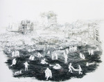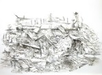 2023Verborgen krokodil in een soort landschap van potlood en pigment op papier