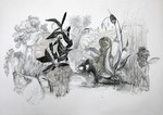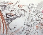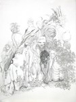 2014Potlood, krijt, grafiet, houtskool, en andere materialen zijn gebruikt voor een landschap van menselijke en plantaardige wezens